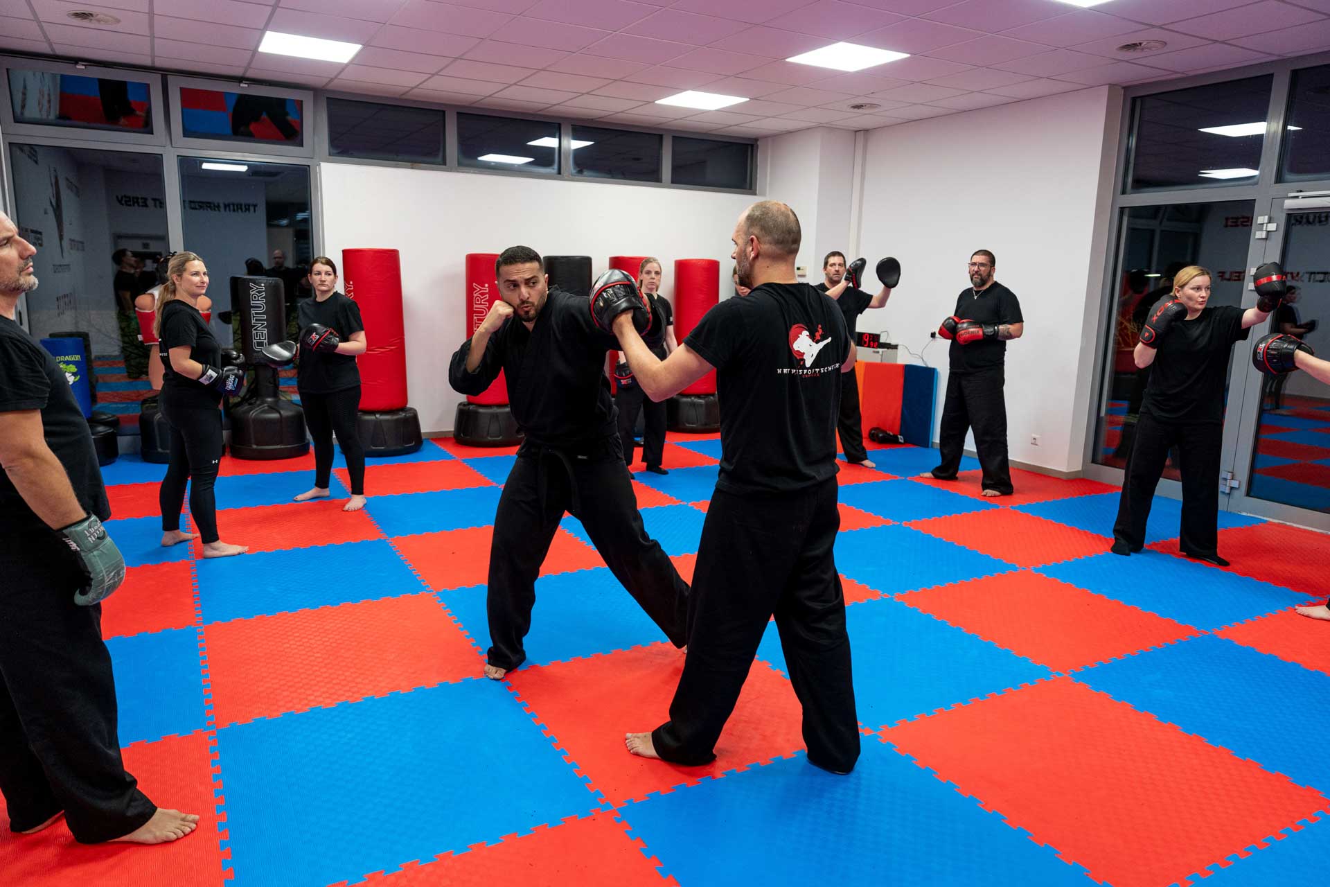 Unser Krav Maga-Kurs für Erwachsene ab 16 Jahren bietet ein leicht erlernbares und zweckorientiertes Selbstverteidigungssystem. Krav Maga setzt auf einfache Prinzipien und intuitive Bewegungsabläufe, die auch in Stresssituationen abrufbar und unter Druck anwendbar sind. Im Training lernst du, dich effektiv zu verteidigen und in kritischen Situationen schnell und sicher zu reagieren. Gleichzeitig förderst du deine körperliche Fitness, steigerst Ausdauer, Kraft und Beweglichkeit und stärkst dein Selbstbewusstsein.